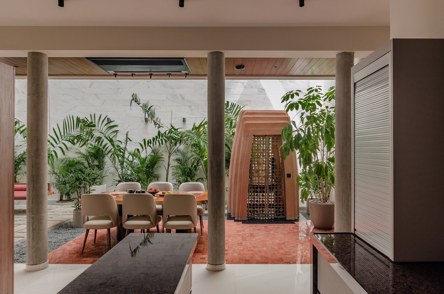 Step into the indoor, where nature and luxury intertwine. A lush array of greenery, paired with calming water features, brings the outdoors inside, creating a peaceful sanctuary within the home. Our custom furniture, both durable and elegant, fits perfectly in this green paradise, enhancing the beauty of both nature and design.